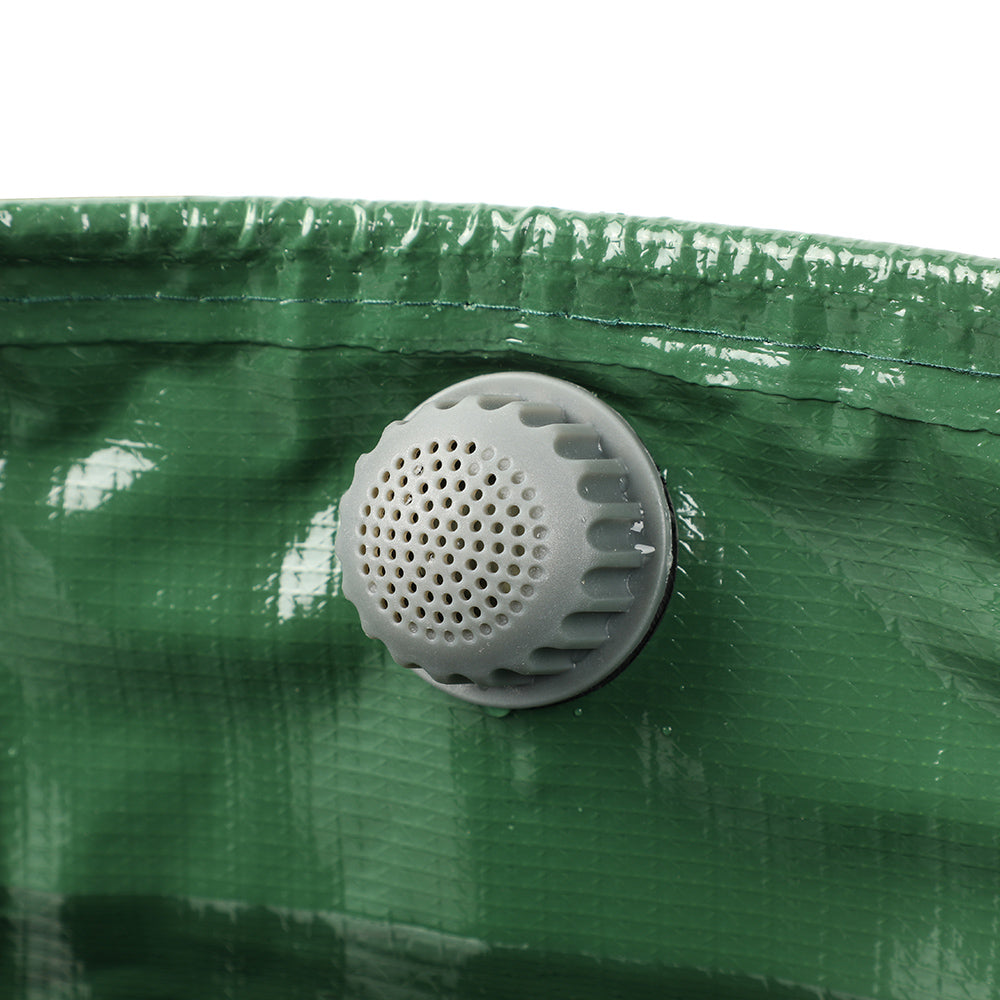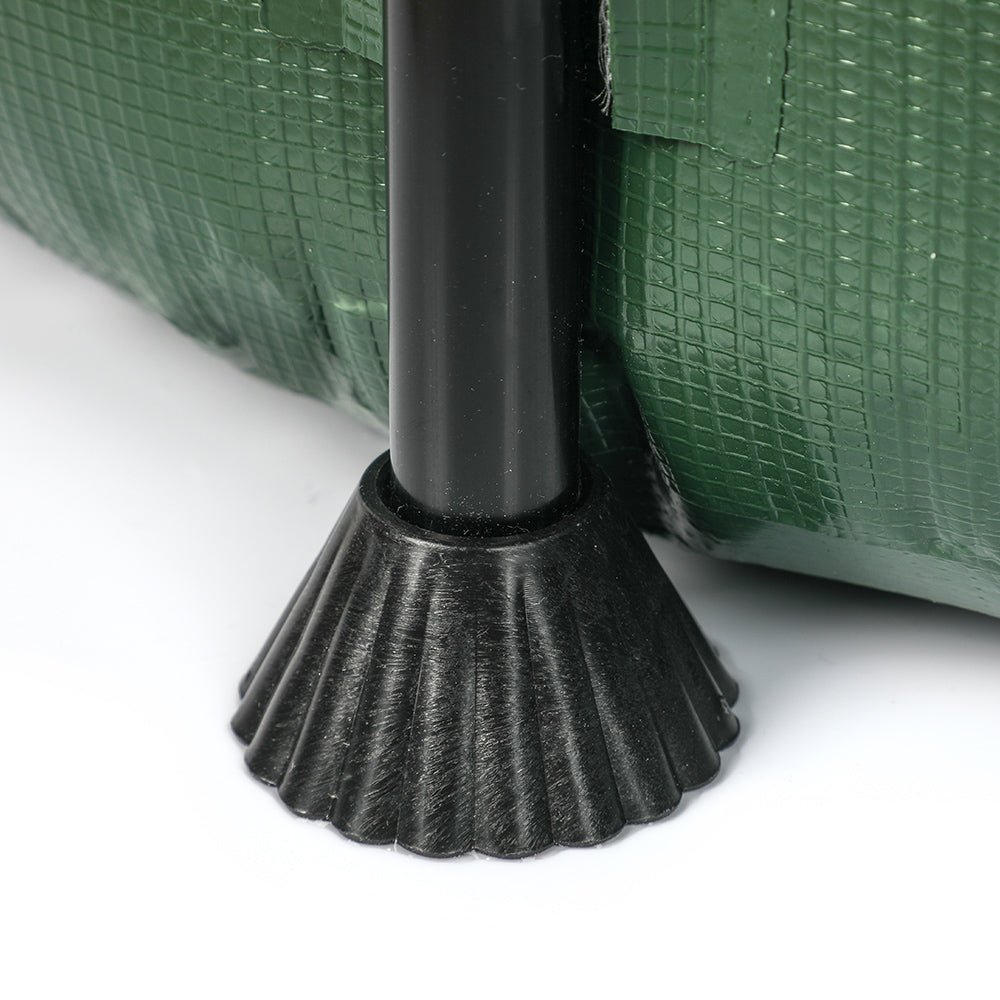 Contient : x1 bâche pour la cuve, x1 couvercle avec fermeture zippée, x2 sortie d’eau (robinet + branchement tuyau), x1 tuyau pour le trop-plein d’eau avec adaptateur, pieds et barres de maintien.
