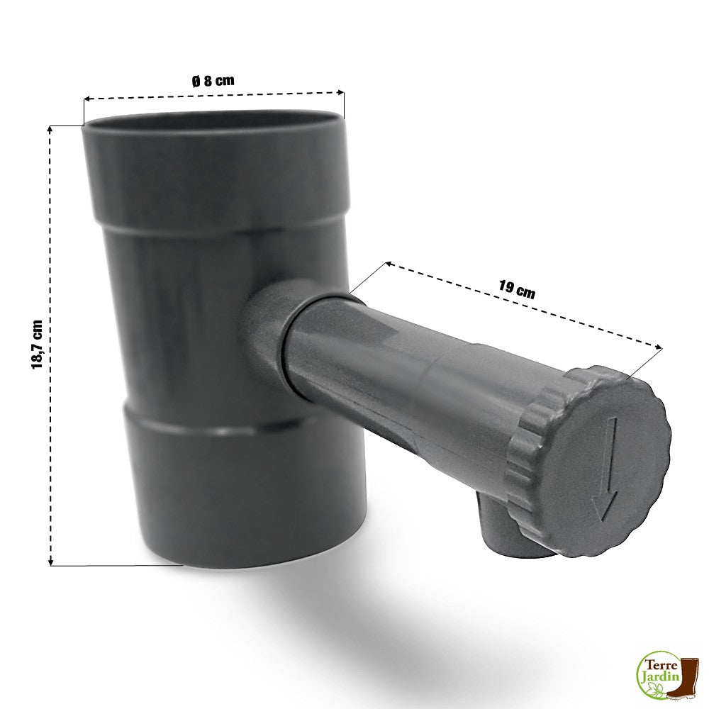 Ce collecteur d'eau de pluie est équipé d'un robinet à débit réglable.