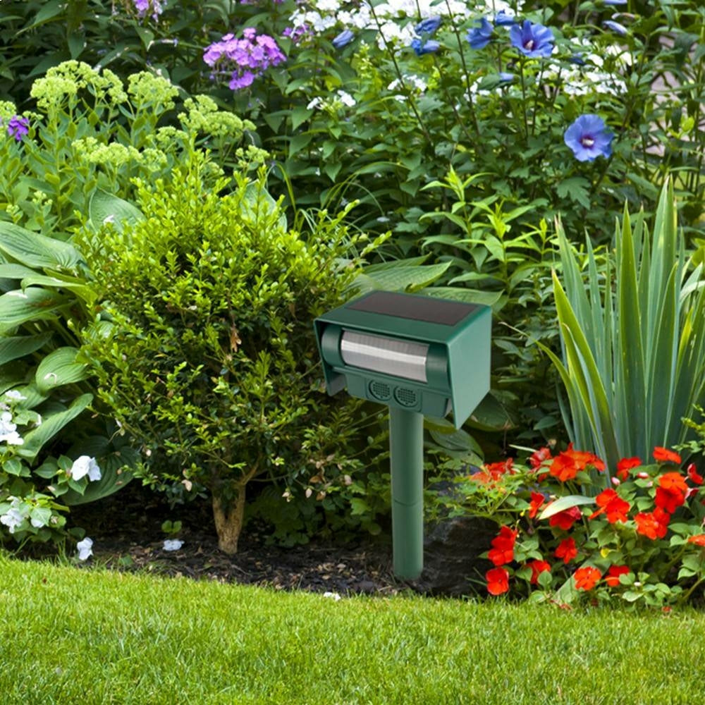 Émet des ultrasons qui repoussent ratons laveurs, mouffettes, cerfs, écureuils, lapins, souris, rats, chiens et chats errants dans un rayon de 9 m.