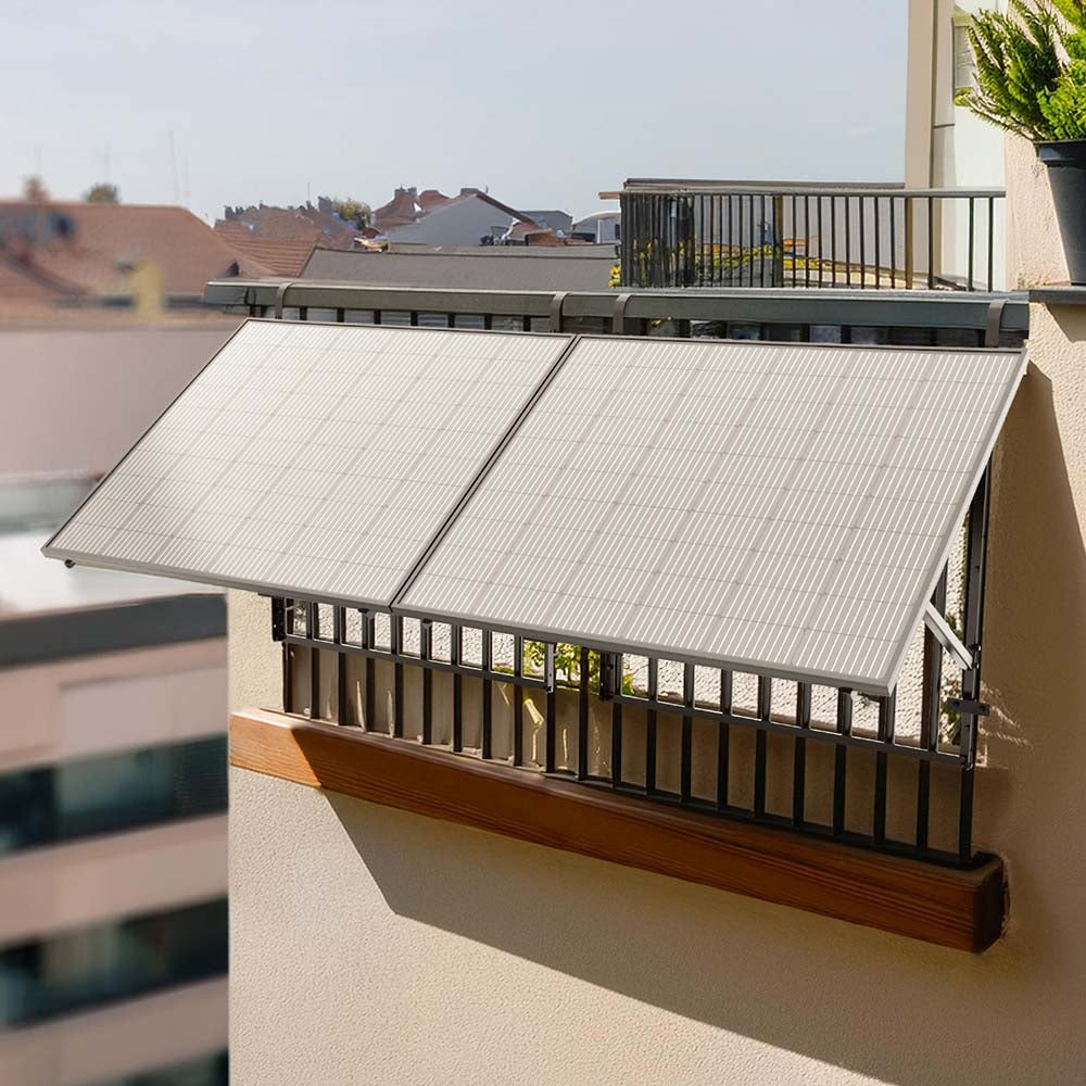 Sa conception « tout en un » vous permet de fixer le panneau solaire au sol, au mur et sur la balustrade de votre balcon/clôture ...