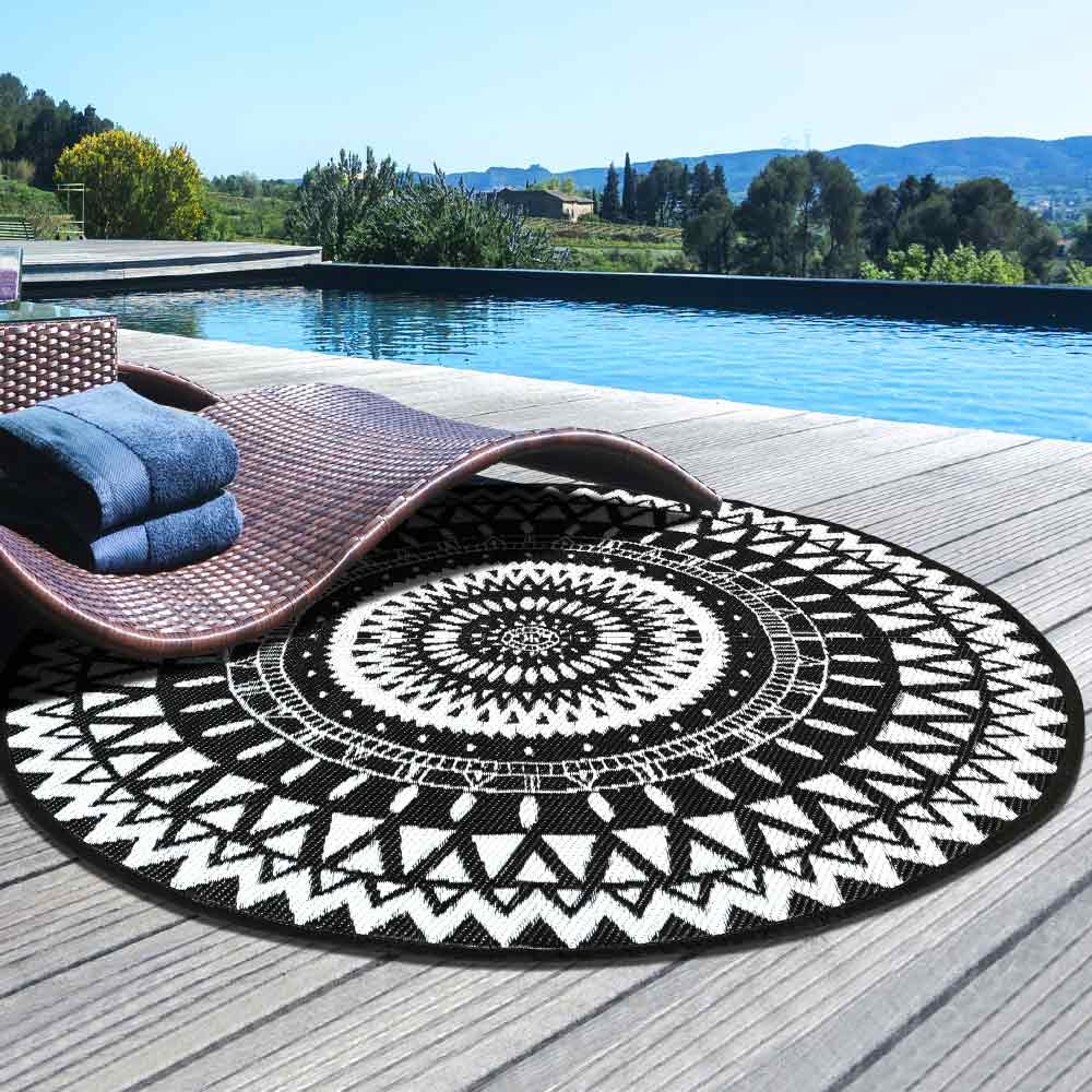 Ce tapis à motif ethnique apportera une touche de déco dans votre salon de jardin.