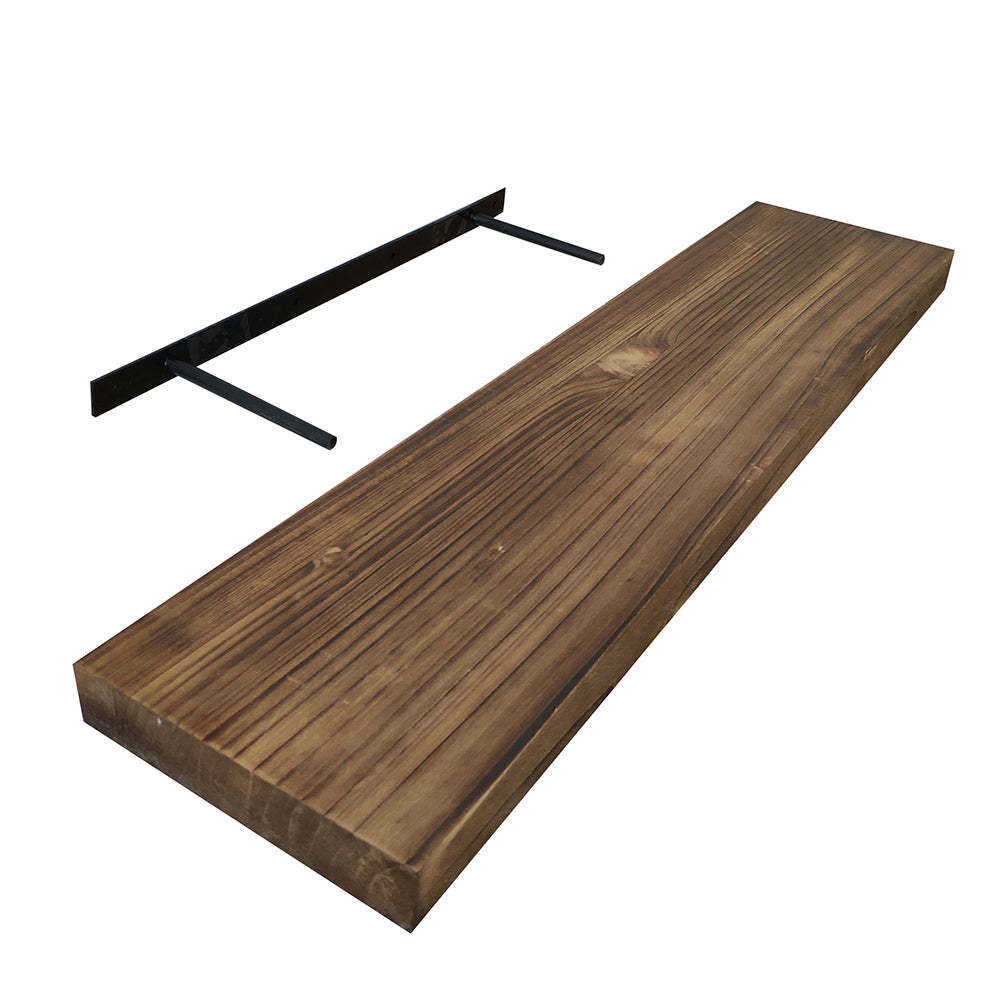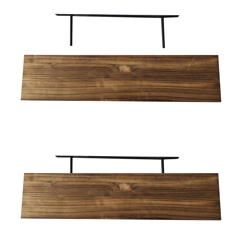 Dimensions :  • Étagère : L. 60,4 x l. 14 x E. 2,9 cm.  • Fixation : L. 40 x l. 2 x P. 10 cm.  Matière : bois et métal.  Poids : 1,4 kg environ Coloris : bois foncé.