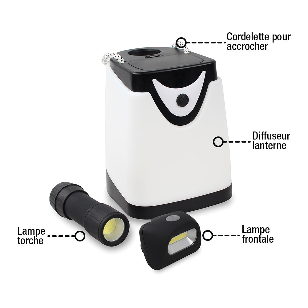 La torche et la lampe frontale s'encastre dans la lanterne.