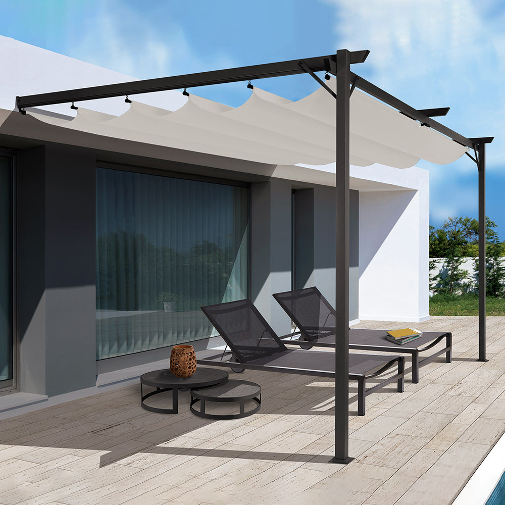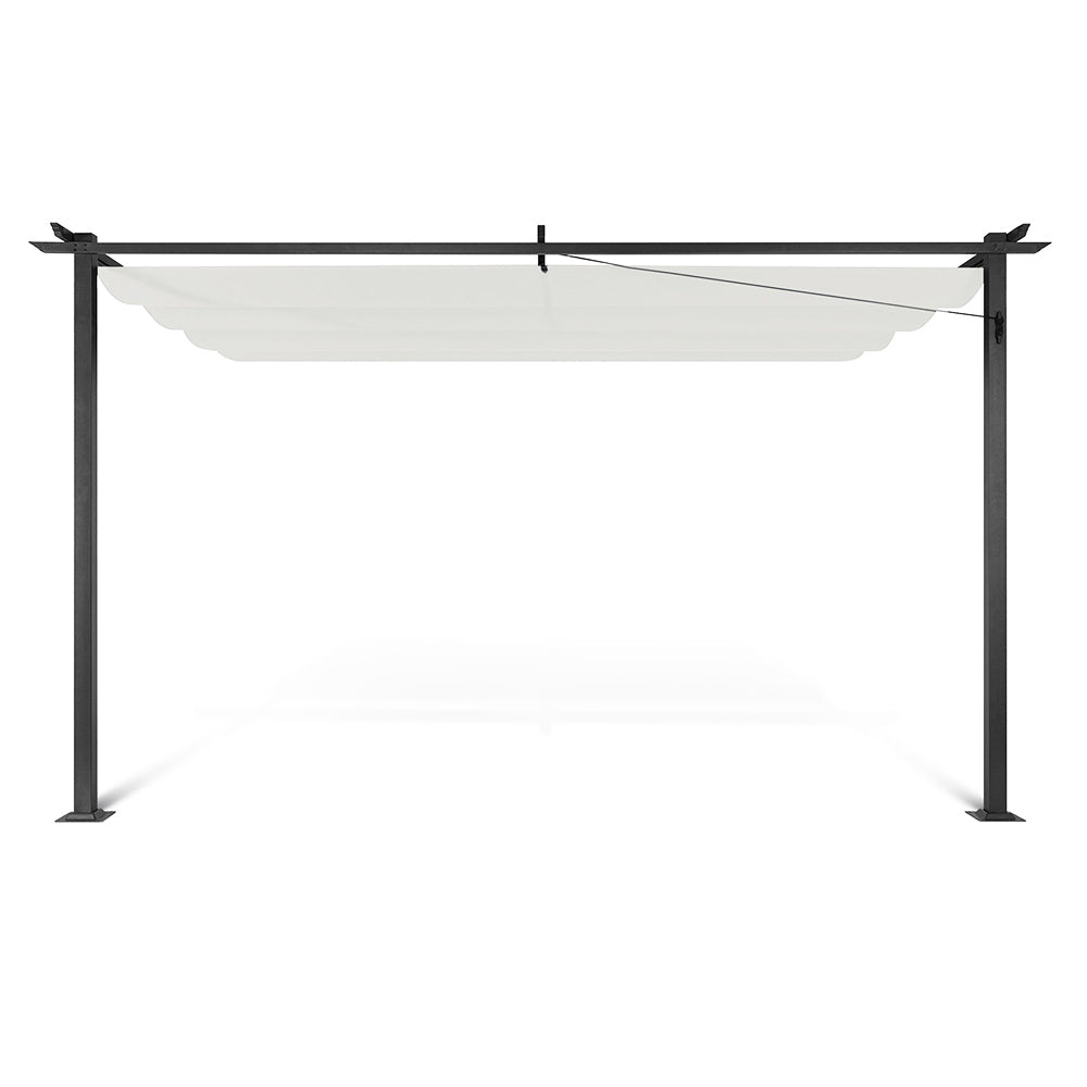 Petit déjeunez, déjeunez ou dinez à l'ombre et profitez de votre terrasse grâce à cette pergola avec toile ajustable.