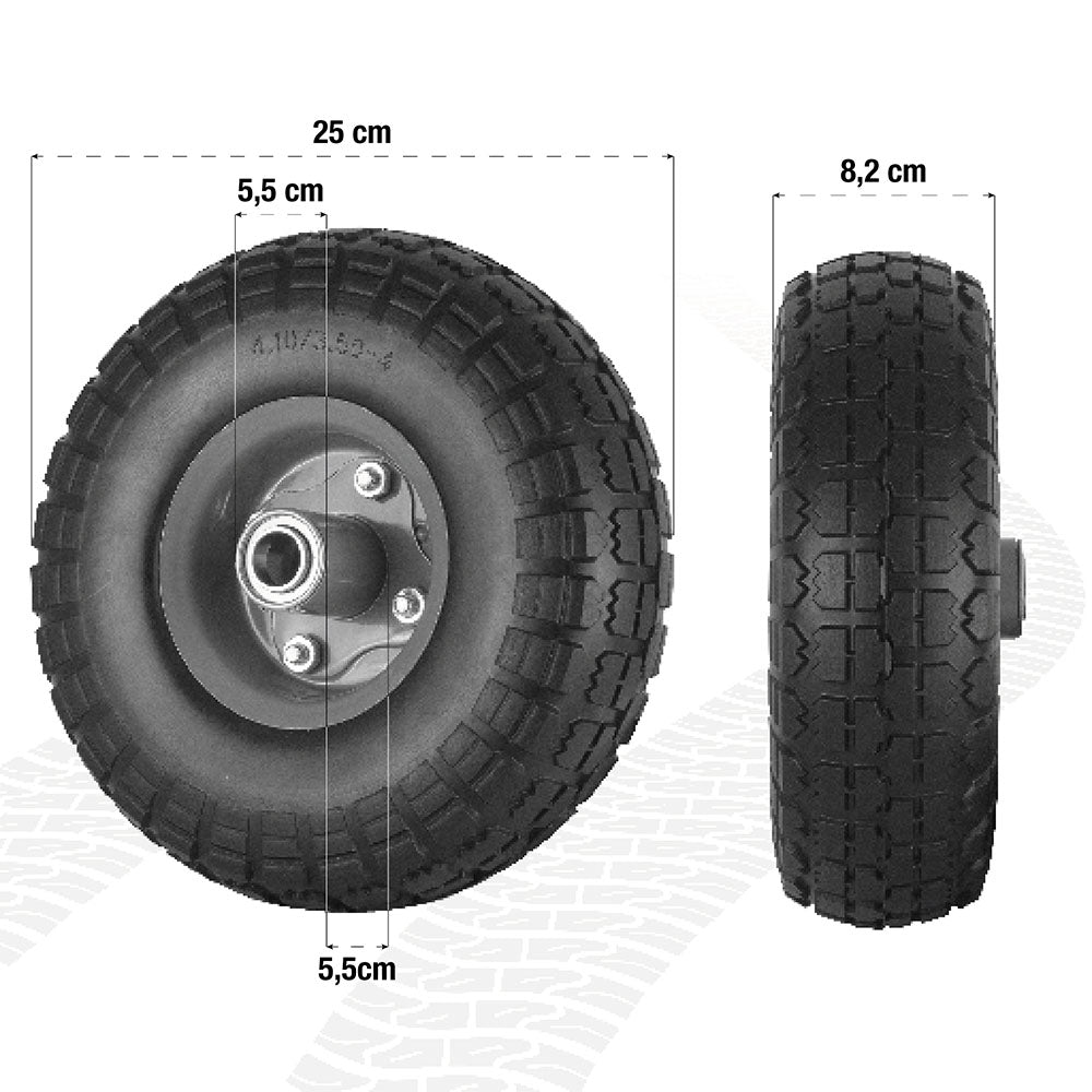 - Pneu : 4.10 x 3.50 - 4 (exprimé en  pouces).
