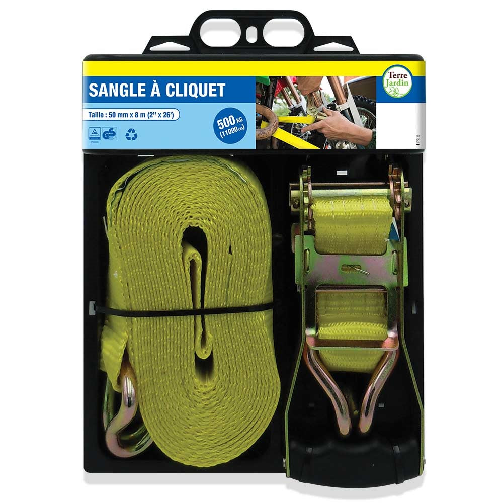 Cette sangle d'arrimage à cliquet dispose d'un verrouillage automatique.