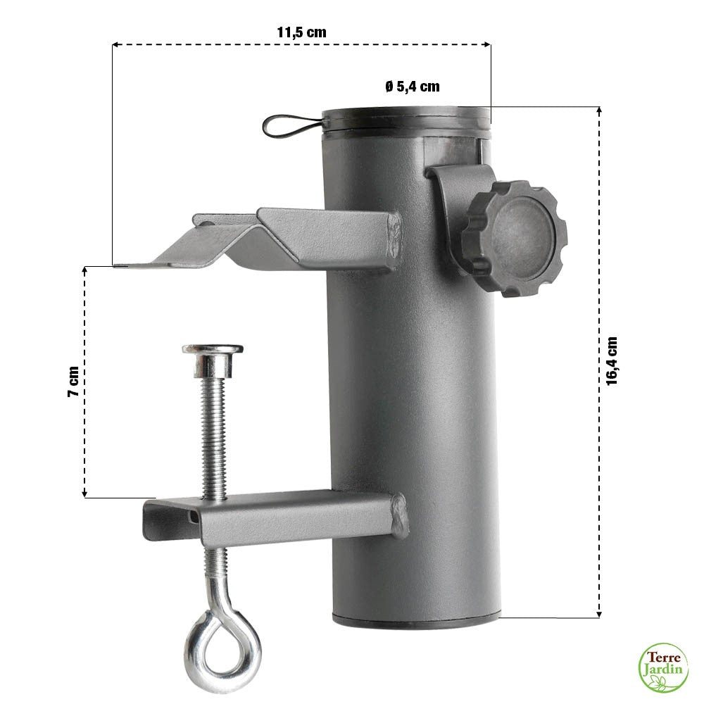 Idéal pour maintenir votre parasol sur votre balcon. Vous pourrez fixer ce support sur des balustrades, barrières, rambardes d'une épaisseur maximum de 7 cm. Une fois l'étau placé, il vous suffira de serrer la vis pour fixer solidement le support.